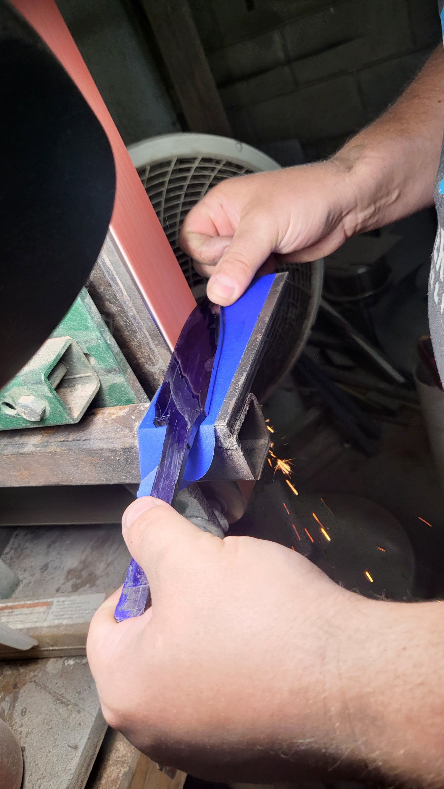 Concept sketch for a railroad‑spike Go Mai Damascus build.