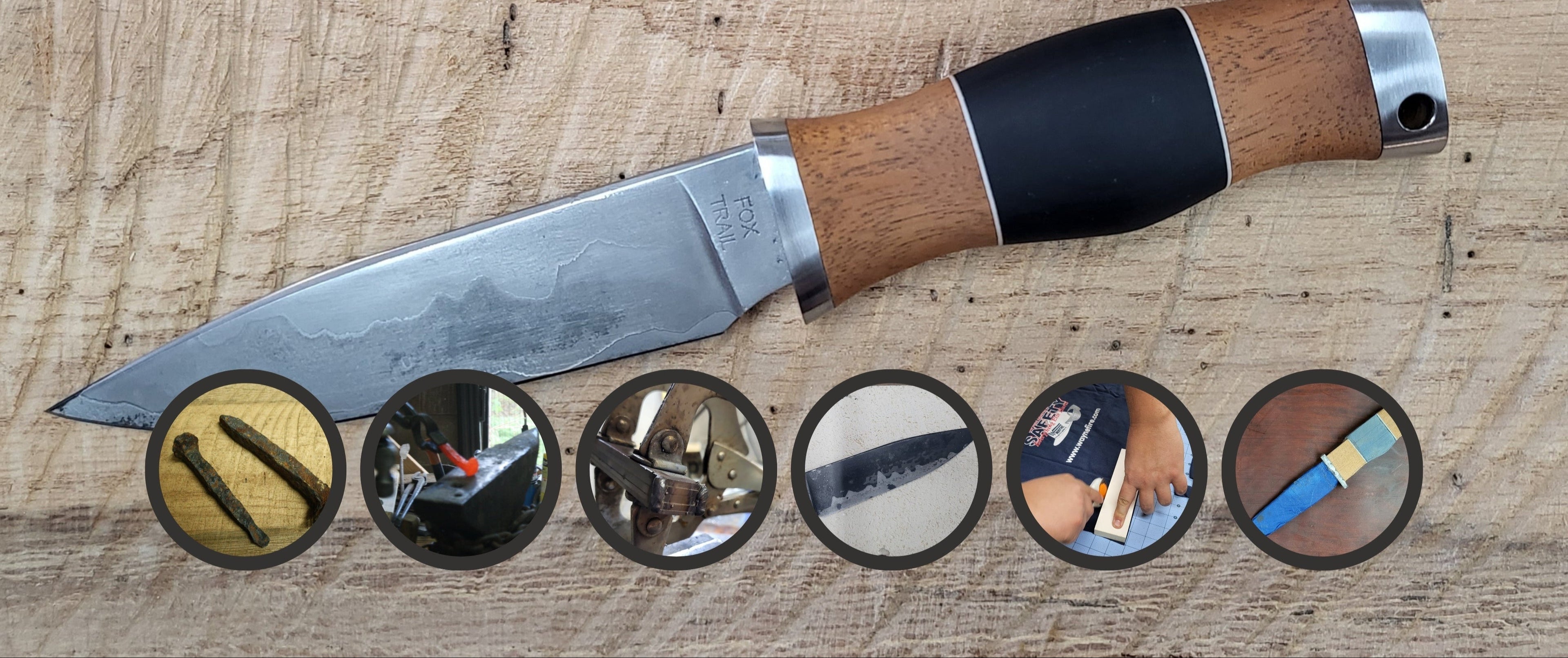 From sprinkler pipe and railroad spikes to Cub Scout uniforms, fire hose, and even a button turned bow‑drill socket — if it matters to you, we’ll make it a part of your blade’s journey.