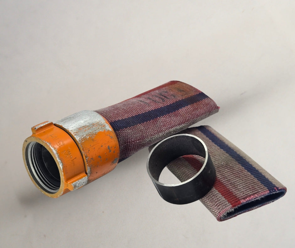 San Mai Damascus crafted from reclaimed fire sprinkler pipe and blade quality steel, finished with a fire‑hose handle — built to honor the people and systems that keep us safe.