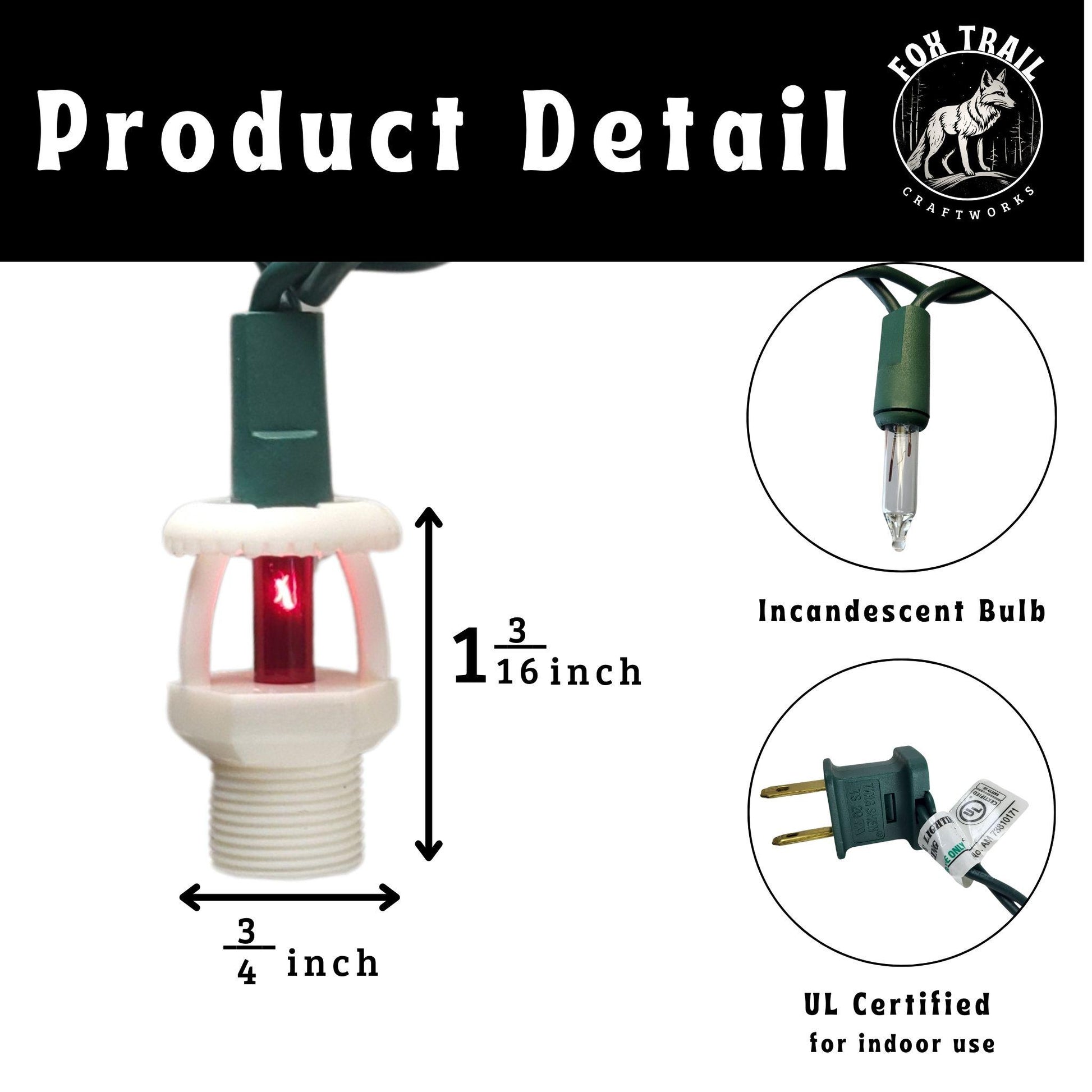 Handcrafted with authentic details — deflector, plug, and frame — each cover clips easily onto the included UL‑certified light strand. Choose from multiple cover colors and string lengths to create the look that fits your space, or mix and match for an educational display that celebrates every sprinkler temperature rating.